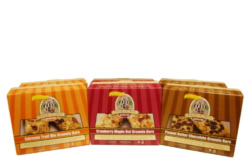 - 10 Peanut Butter Chocolate Bars, 10 Cranberry Maple Nut Bars, and 10 Extreme Granola Bars for your eating pleasure 30 Bars total