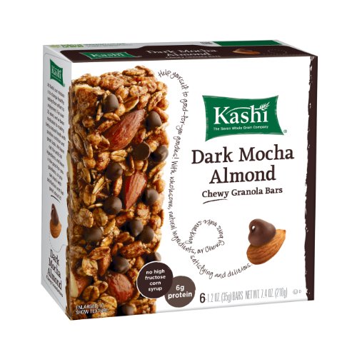 Kashi Tlc Dark Mocha Almond Chewy Granola Bar, 7.4-Ounce Packages (Pack of 6) is a unique blend of Seven Whole Grains and Sesame together with whole, roasted nuts, succulent, sun-dried fruit, and a touch of wildflower honey. The granola bar contains 4g of Fiber and 5-7g of Protein and are as nourishing as they are tasty.